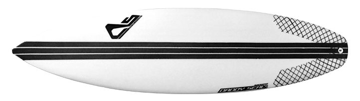 Cette construction « Black lines » en résine epoxy permet d’avoir des planches avec un meilleur rapport poids/solidité. Le flex de la planche est plus rigide qu’une construction traditionnelle ce qui offre un ressenti plus dynamique sous les pieds. Depuis 2018, PRB est partenaire de daddy seal au travers des pains de mousse polystyrene utilisés pour cette construction : mousse MADE IN VENDÉE ! Visuellement vous ne pourrez pas vous tromper avec ses trois bandes noires de carbone sur le pont.